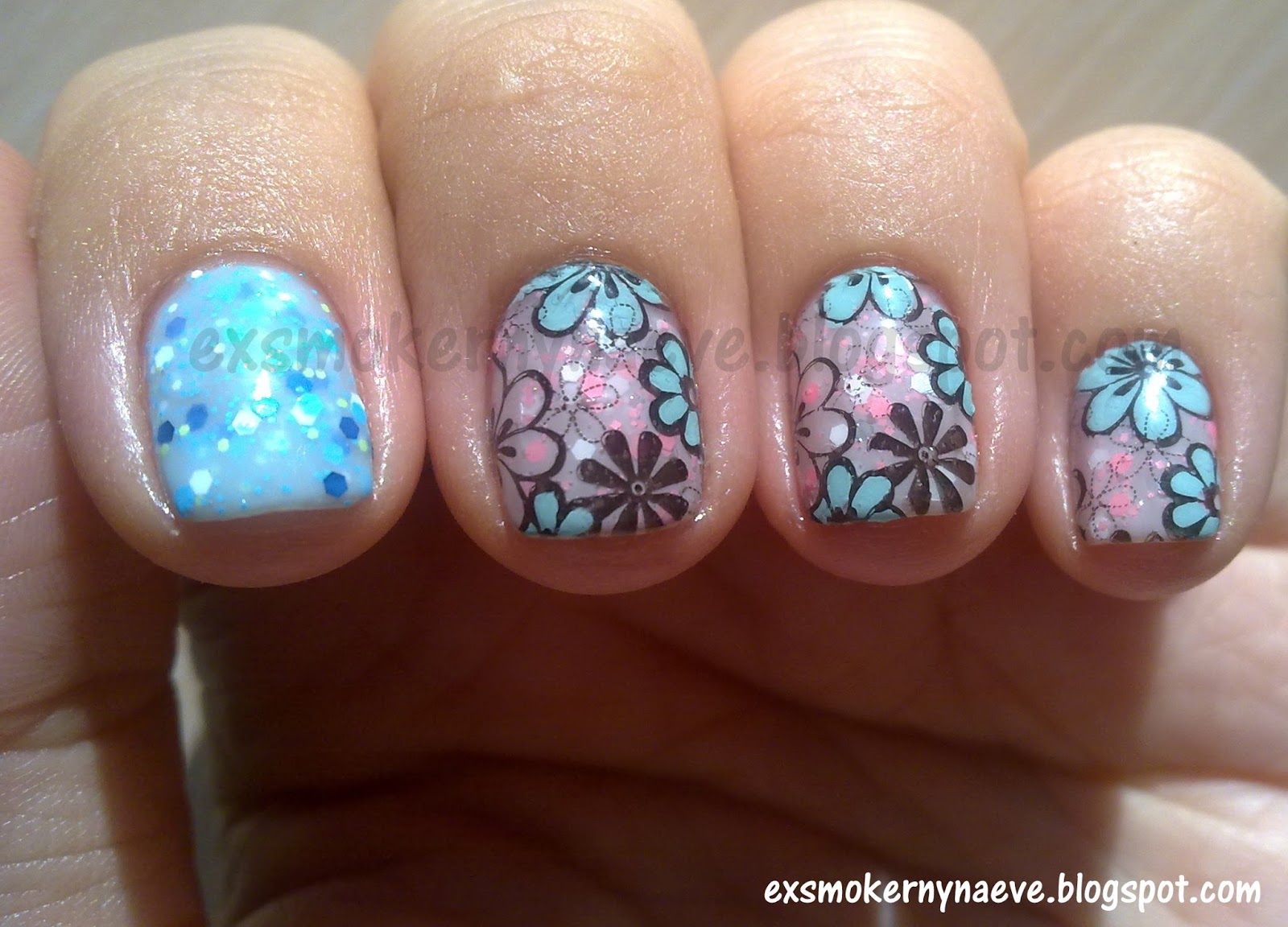 Today I will show you manicure inspired by one of the ladies that I follow in flicker - check her out. This is the manicure that inspired me - click. Also I wanted to try the glitter nail polishes that I've got from my mum for Christmas. So I've decided to use the pink and blue one because this year Pantone colors - Rose Quartz and Serenity. Check the final result: